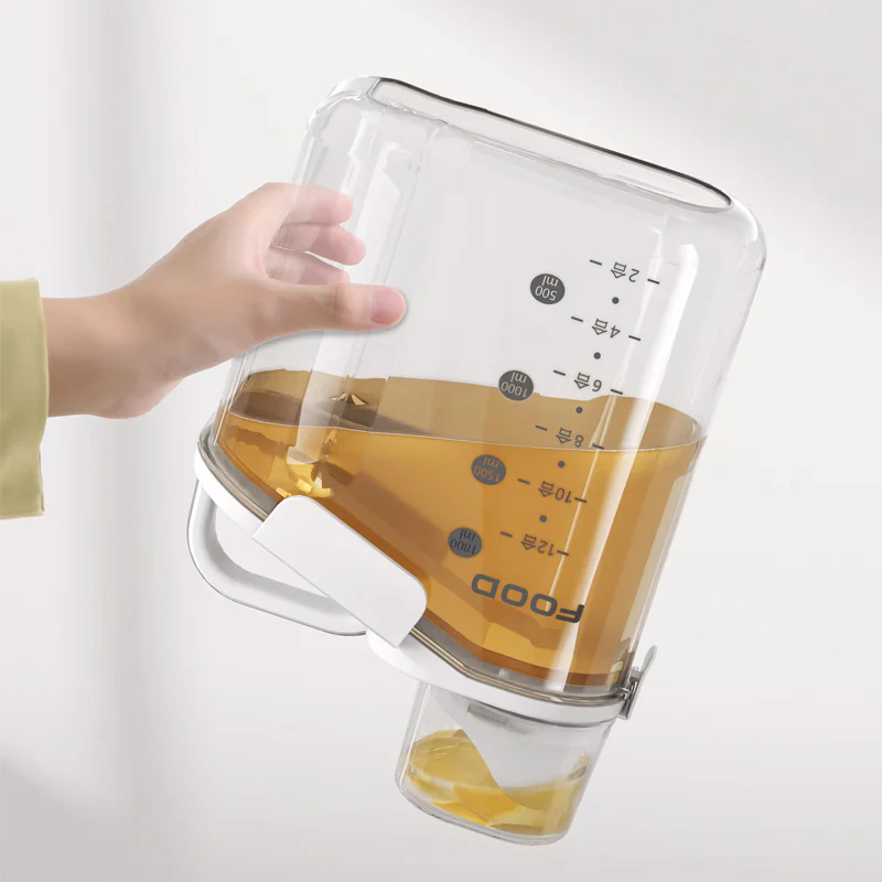 ✔ فوهة سكب + كوب قياس = كل شيء نظيف