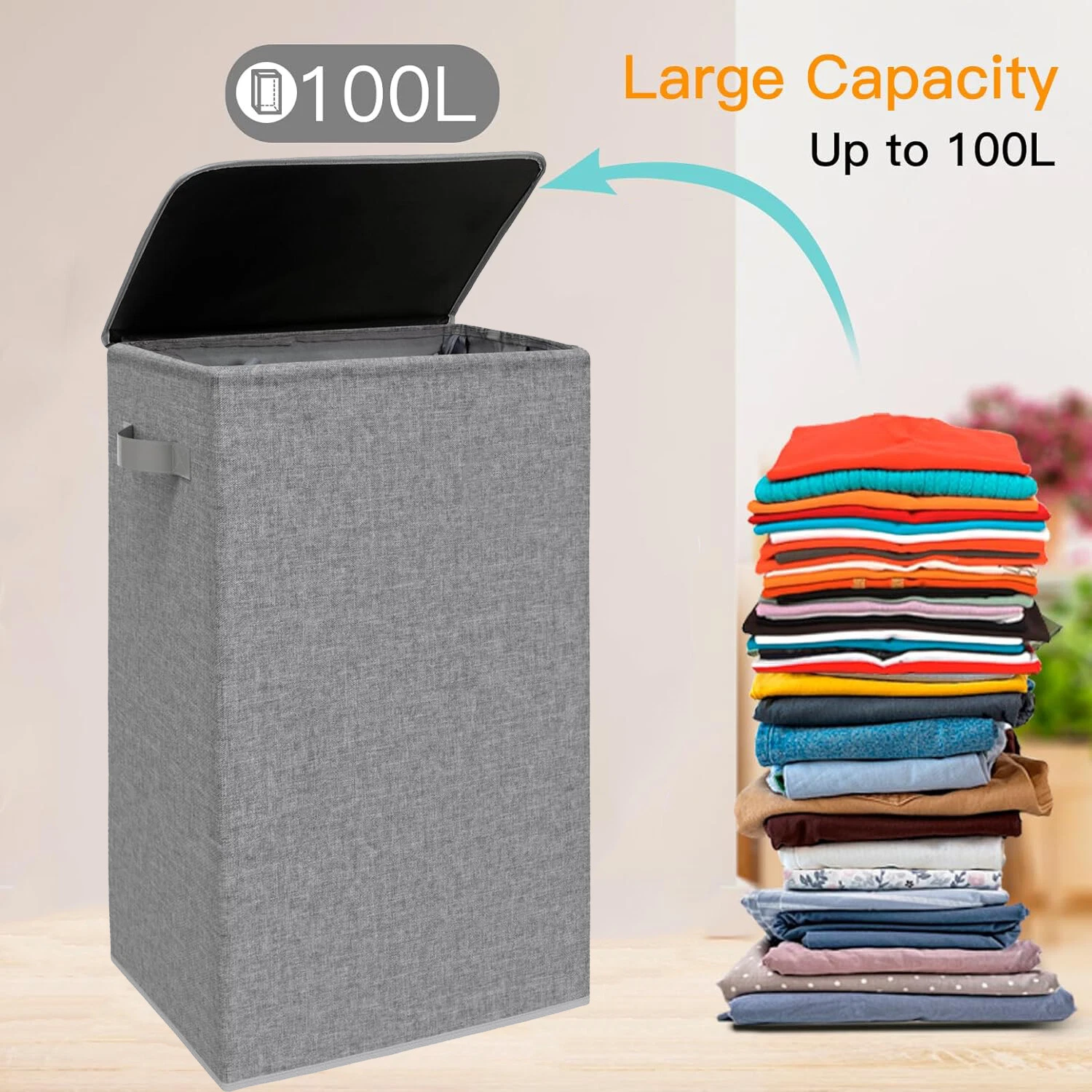 مزودة بمقبضين مريحين لسهولة الحمل والتنقل بين الغرف — سواء للملابس المتسخة أو النظيفة.